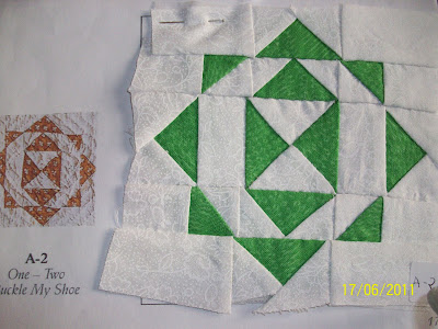 Sí, ya lo sé, hay que plancharlo... La verdad es que me encanta cómo está quedando, la última vez que le metí mano creo que fué a finales de verano, porque la verdad es que ahora todo el tiempo que puedo lo dedico al "suicidio salero", osease, al Dear Jane, también conocido como "la Juani". Este es el cutremontaje que me he hecho en Excel:Aunque no creáis, no todo ha sido coser y cantar, he tenido algunos "poblemas", como con el B2, que me hizo deshacer y rehacer...